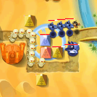 (Strategy)The Egyptian empire is in turmoil! There are two military factions striving to gain control! Your objective is to defeat the opposing Egyption force and obliterate their palace. You can crush the enemy palace by sending forth your mystical military units. You can research new units and upgrade them. Build pyramid towers to defend your palace!