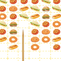 Spongebob is so hungry that he want to eat anything he see.Here, He stops by a BBQ shop where he can pull different food on a stick and at it as a whole. Help Spongebob grab three identical food on at once and eat it. Have fun!