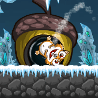 (Arcade) Help a cute little squirrel to gather all the acorns. Click on the bomb and hold it to grow it, release to explode the bomb and to throw the red furball up in the air under the most appropriate angle so that he could overcome all the obstacles and to collect all the delicious acorns!