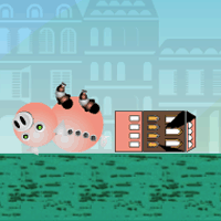 (Arcade) Help a mechanical pig reach paradise by launching him through the city in Mechanipig. Click or press space bar to set the angle of your cannon, and then click or press space bar again to set the power. The pig will fly out of the cannon, destroying and knocking over buildings in his way. You get money for distance, and for the amount of damage the pig causes. Buy upgrades after each launch to make it possible for Mechanipig to reach his destination. Have fun!
