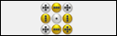 (Puzzle) You are presented with a board containing two colors. The goal is to turn all colors the same color. Each symbol depicts which buttons will change. Pressing a button enacts the change. The change can be to color, position or symbol. Good luck!