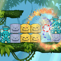 Get the ball rolling to eliminate all the cursed totems! Click on the dragon bomb to blow them all. You can remove the yellow blocks and cut the ropes by clicking with your mouse. Let's bomb!