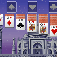 (Card & Casino)The object of this cross between Klondike and Indian Patience is to move all the cards to the 4 foundations. You mave move a card at the top of a tableu column to another column if it creates a descending sequence (any suit but not the same suit). You may also move a sequence of cards as a group to another tableau column but only if they are not the same suit. When there is only 1 card on a tableau pile the cards becomes protected. A protected card may only be move to a foundation and no cards may be placed on top of it. Protected cards remain protected until the stock is empty. Click on the stock (top right) to turn over a card. The stock can only be used once. Have fun!